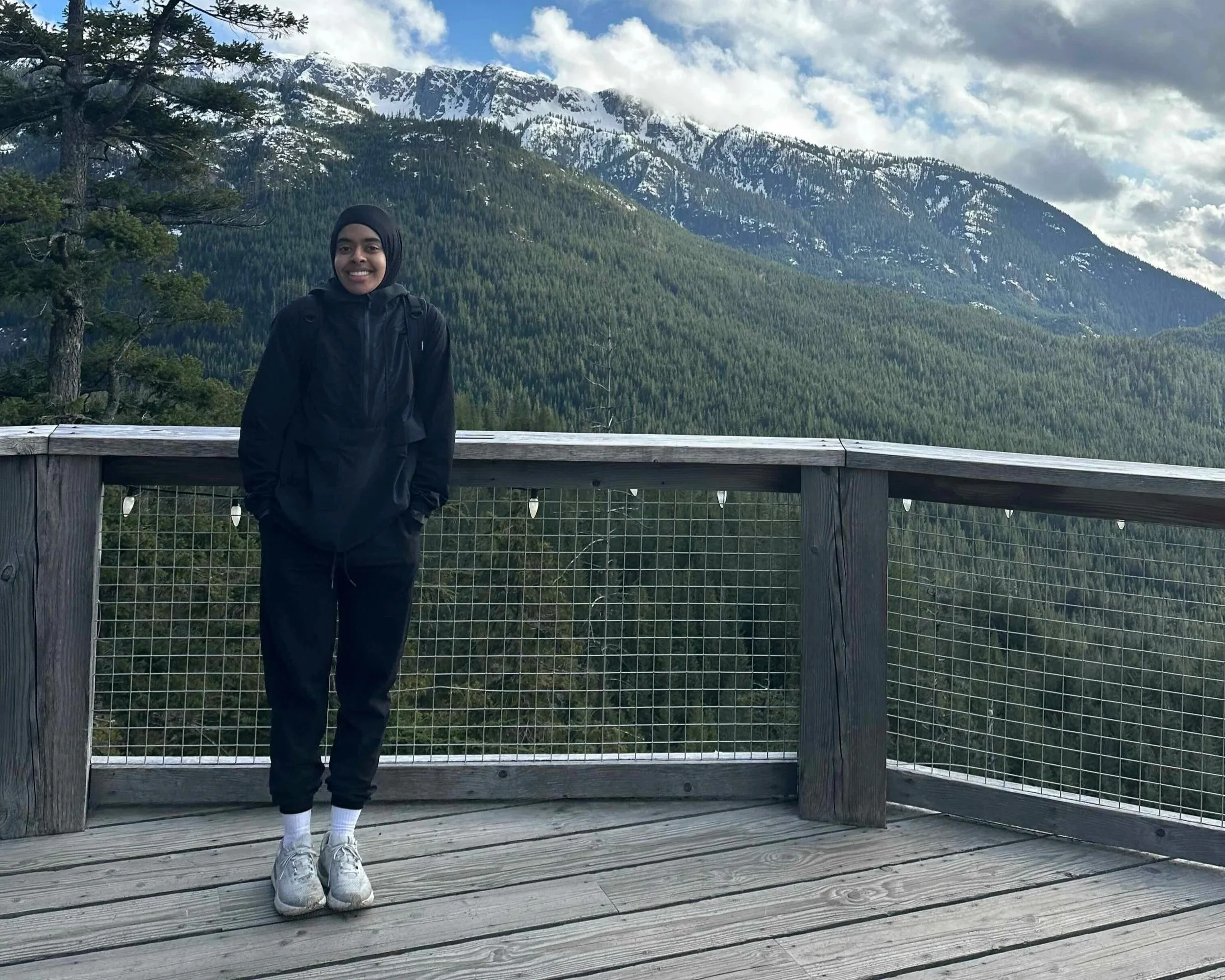 Mariam is pursuing an accelerated BS/MS/PhD in biochemistry. Her earliest memories are of watching Planet Earth with her mom, tracing birds across the sky. That curiosity led her to science — and to the outdoors, where she once was harassed on a trail for wearing a hijab. She wrote that she wished for the quiet reassurance of other women around her, of not being alone. On Mt. Baker, she won't be.