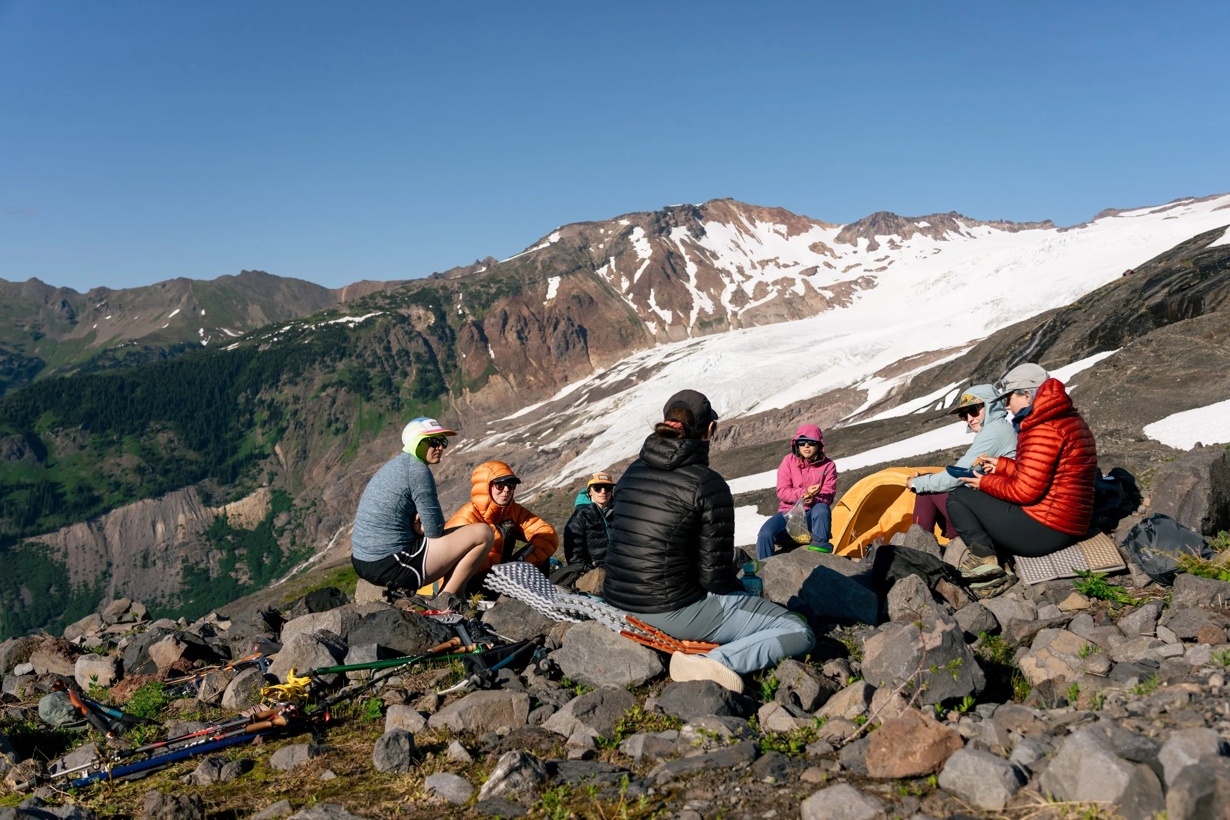 This 4.5 day guided women+ expedition offers an unforgettable adventure into the heart of the Glacier Peak Wilderness, blending physical challenge with spiritual connection to the mountains.
